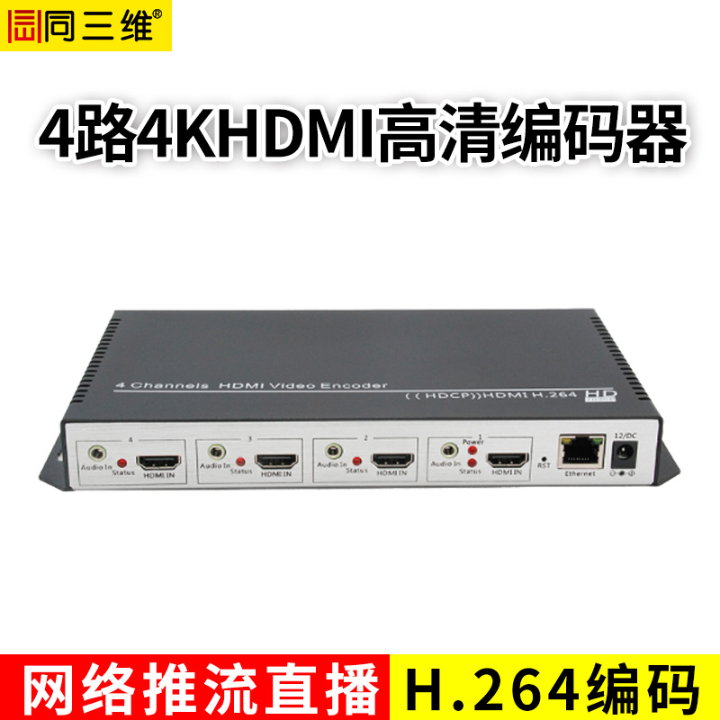同三维T80001HK4四路4K30HDMI H.264编码器4路同时编码,带4路3.5外置音频 同三维T80001HK4用于高清视频信号([email protected])编码及网络传输的硬件设备,采用最新高效H.264高清数字视频压缩技术,具备稳定可靠、高清晰度、低码率、低延时等特点。输入高清HDMI、音频信号,